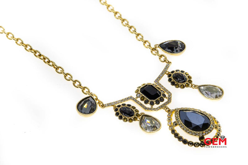 Collar Swarovski de eslabones con cristales de piedras multicolores y baño de oro amarillo de 17,8"