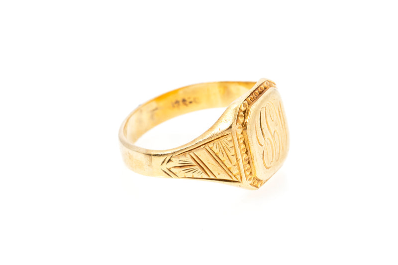 Antique Inscribed 14k 585 Yellow Gold Hand Carved Design Signet Ring
