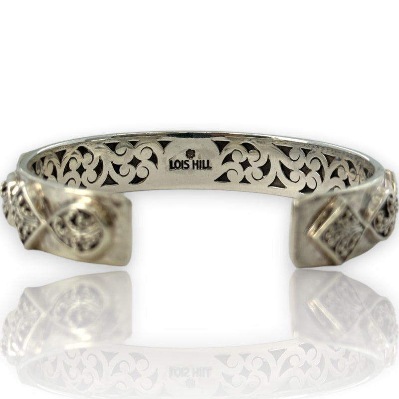 Lois Hill Hammered 925 Sterling Silver Cuff with Filigree and Granulation Details